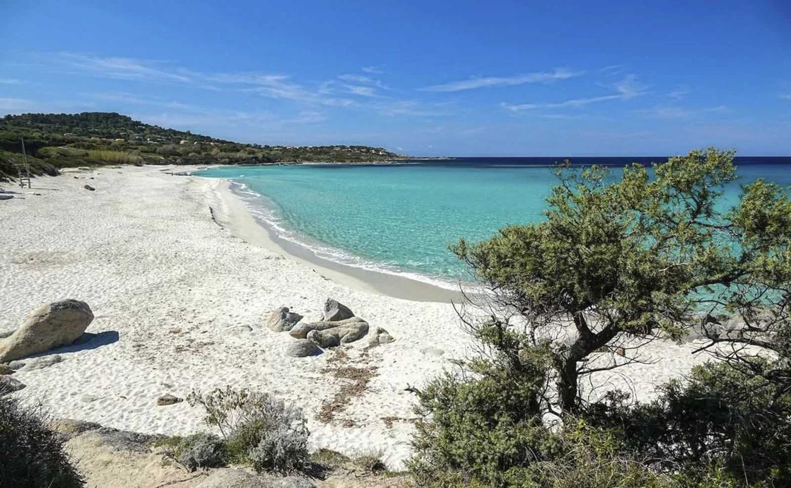 À 150 mètres, plage de sable fin et eau cristalline dans un site sauvage et préservé.